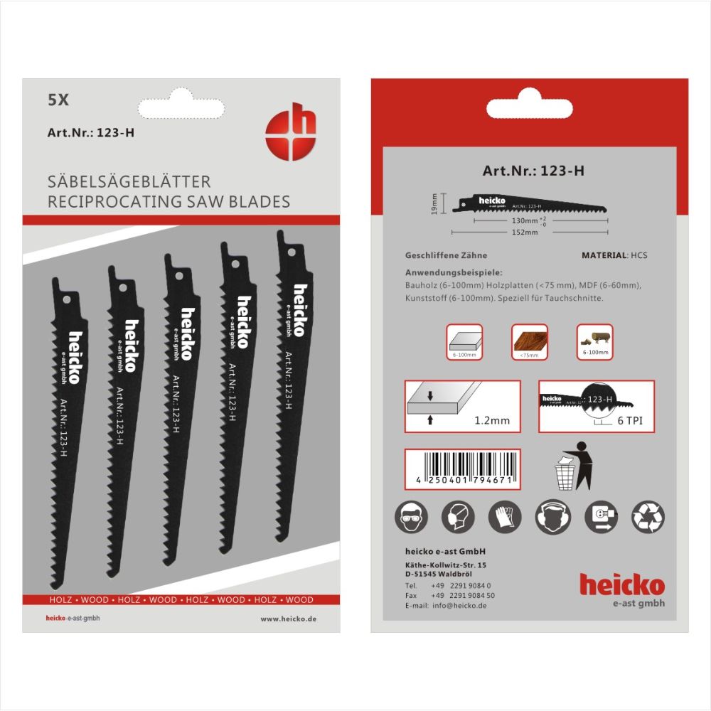 Komplet žagalnih listov za sabljasto žago. Primerni so za rezanje lesa.